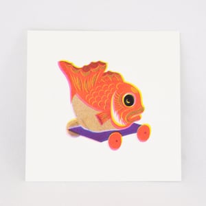 The Tai guruma is a traditional Japanese sea bream-shaped toy or lantern on wheels. It takes its origins in the Maki district of Niigata town during the Edo period. It was a traditional toy that children took with them when visiting ancestral graves.